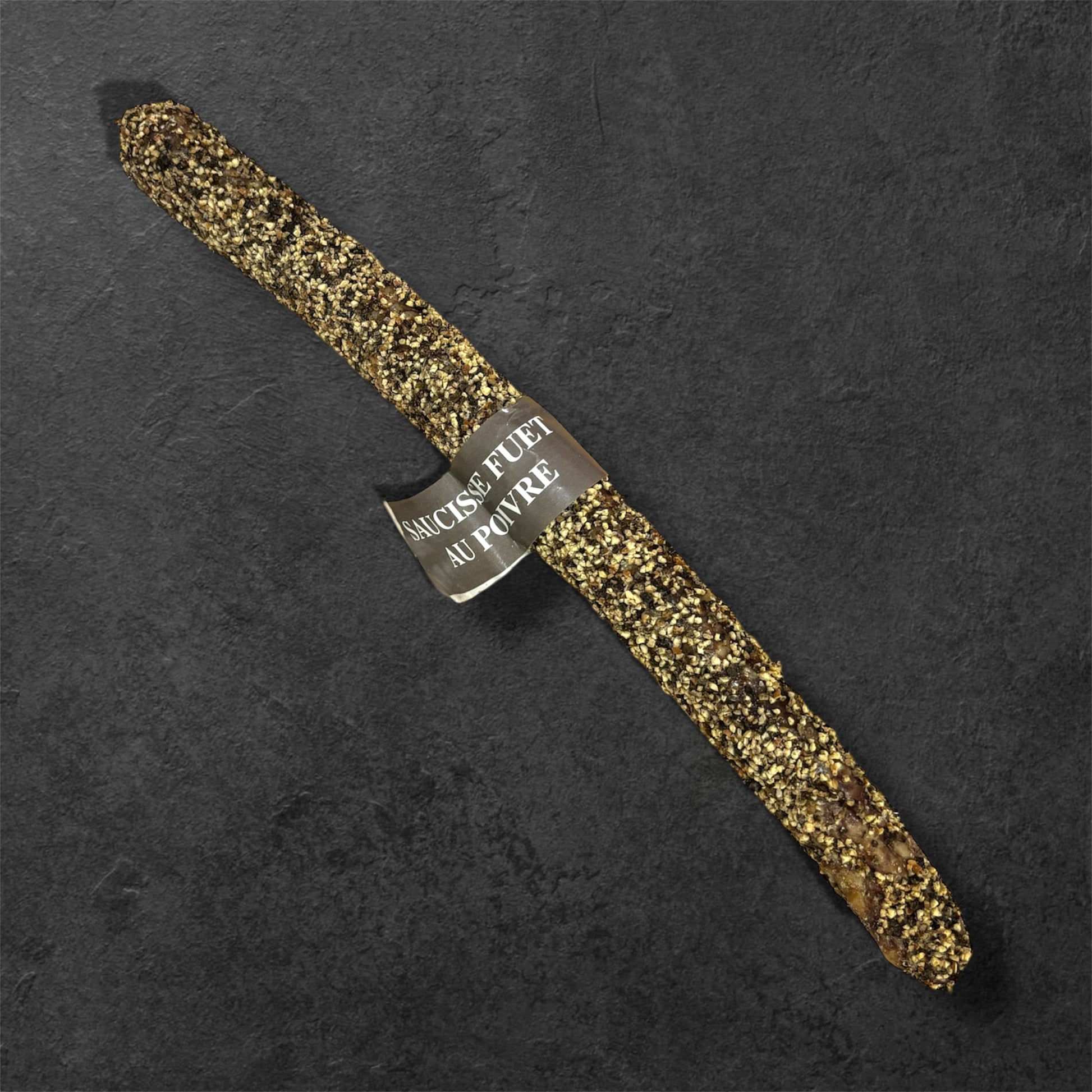 ⚠Petit saucisson pur porc au caractÚre affirmé, le fuet au poivre séduit par son goût franc et légÚrement sucré, relevé par un enrobage au poivre noir entiÚrement comestible.